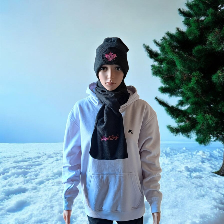 Un bonnet chaud avec un logo stylé, une écharpe polaire, un beau sweat, manque la doudoune qui viendra en nouveau produit bientôt.